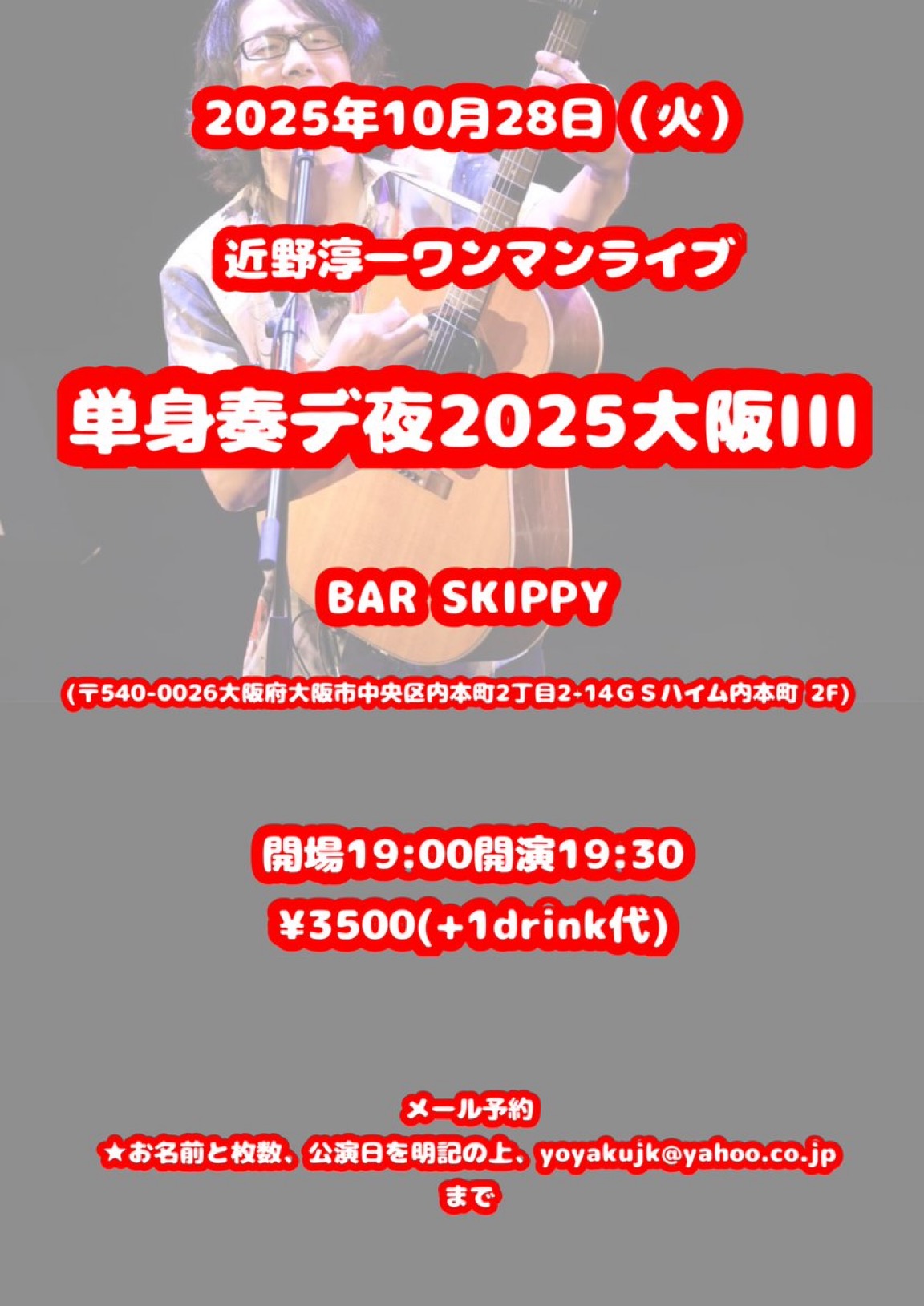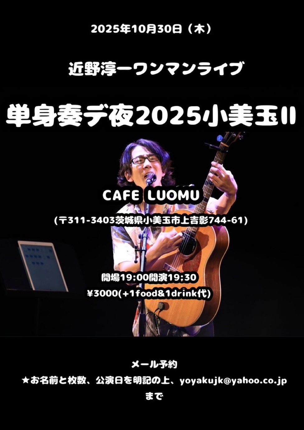 18:00 / 18:30 近野淳一・磯山純 2マンライブ〜淳朴純真巡業2025〜水戸編〜 2025年11月21日 18:00/18:30 近野淳一・磯山純 2マンライブ〜淳朴純真巡業2025〜水戸編〜